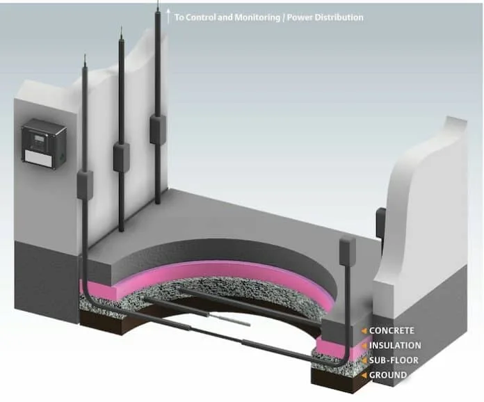 • Enhanced Insulation: Use high-quality, moisture-impermeable insulation under the floor slab, tapering near edges to reduce heat loss. Combining insulation with heating can minimize the depth of frost penetration.